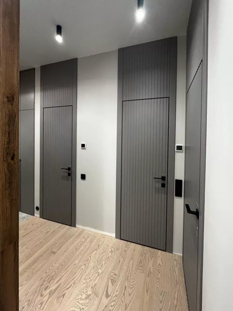 • Ламинированные двери: Покрыты пленкой, которая имитирует текстуру дерева, камня или полотна в покрытии краской. Гладкие и фрезерованные варианты.